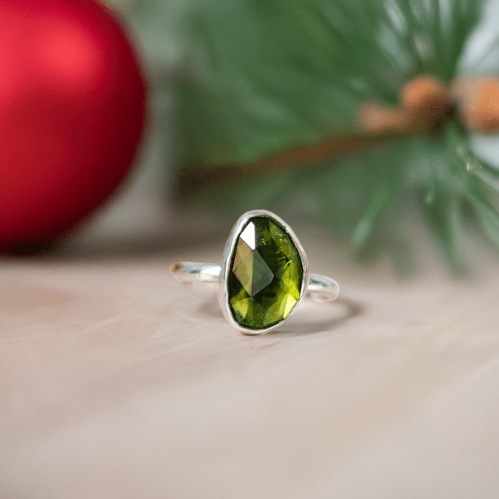 Add a festive touch with our Peridot Statement Ring, featuring a mesmerising green gemstone. This unique, eco-friendly piece brings a refreshing colour to any collection, making it a thoughtful and stylish holiday gift.