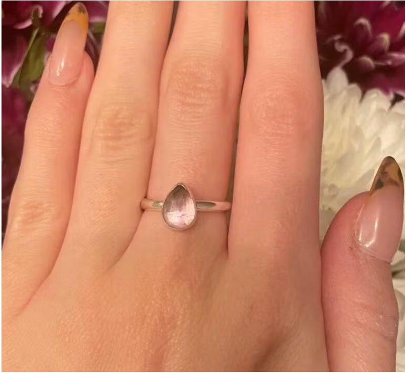 Amethyst Rosecut Pear Sterling Silver Ring | Symbol of Calm & Clarity – Lunar Moth Jewellery