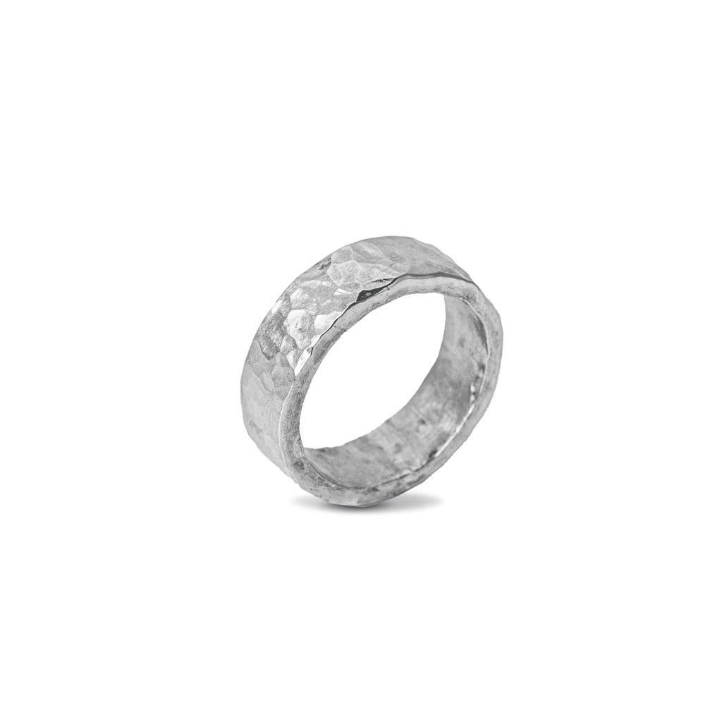 Men’s Hammered Sterling Silver Ring — 6 mm, Everyday Comfort Fit | Han – Lunar Moth Jewellery