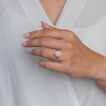Sterling Silver Pink Opal  Statement Ring worn on model's left hand.