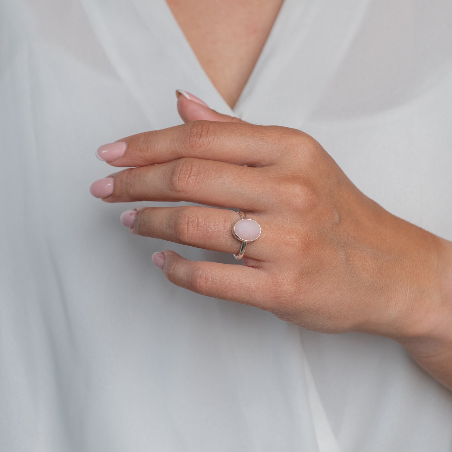 Each Pink Opal Statement Ring is handmade to order in our UK workshop, using a hand-selected pink opal chosen for its gentle, luminous glow. Every stone is unique—no two are ever the same.