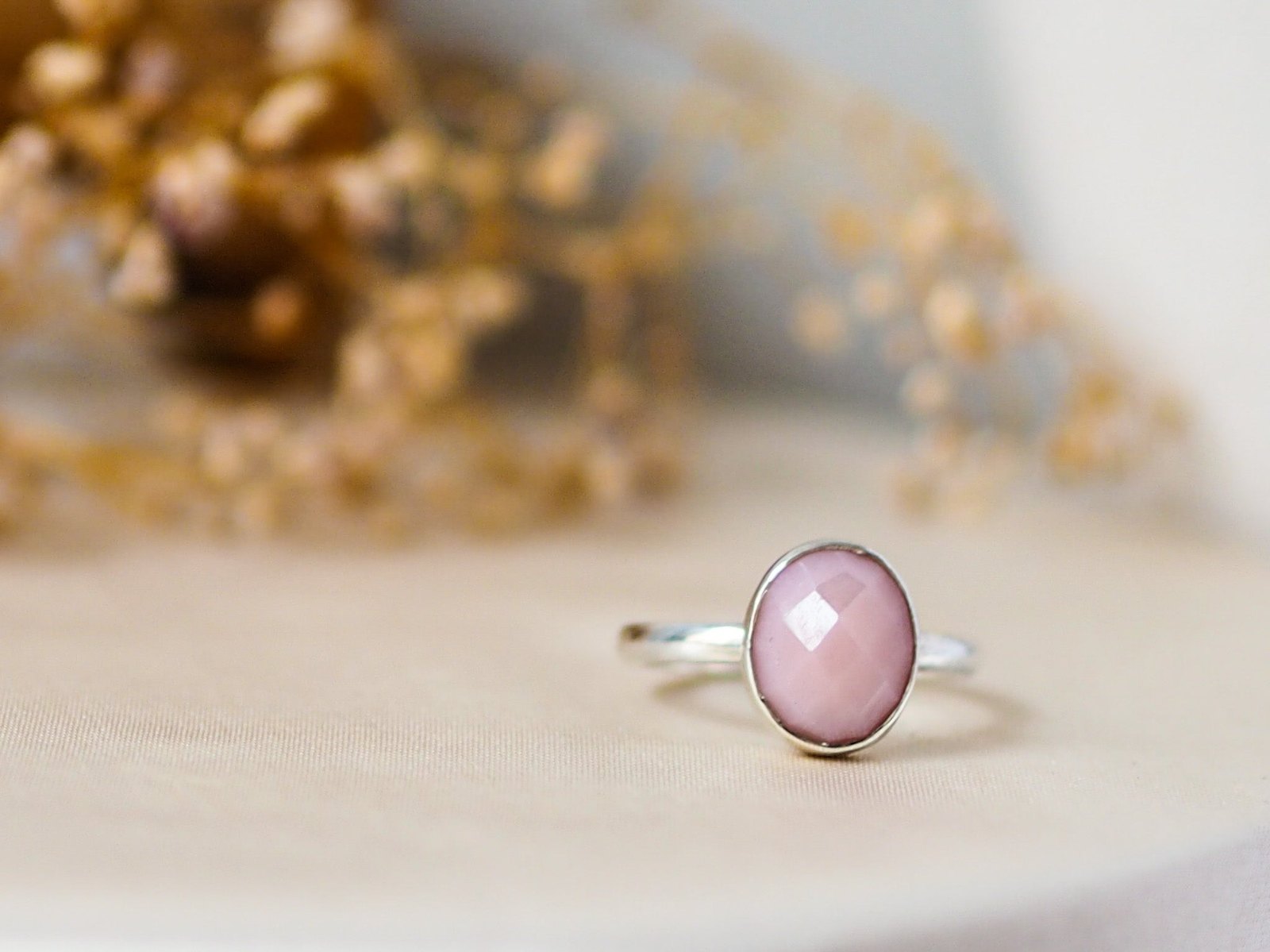 Pink Opal Statement Ring is handmade to order in our UK workshop – Lunar Moth Jewellery