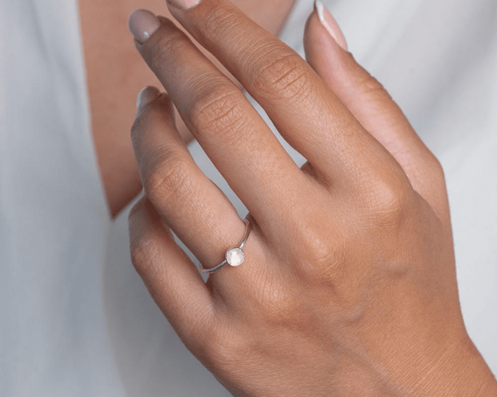Wear our Moonstone Stacking Ring alone for a minimalist look or stack with others for a playful statement.