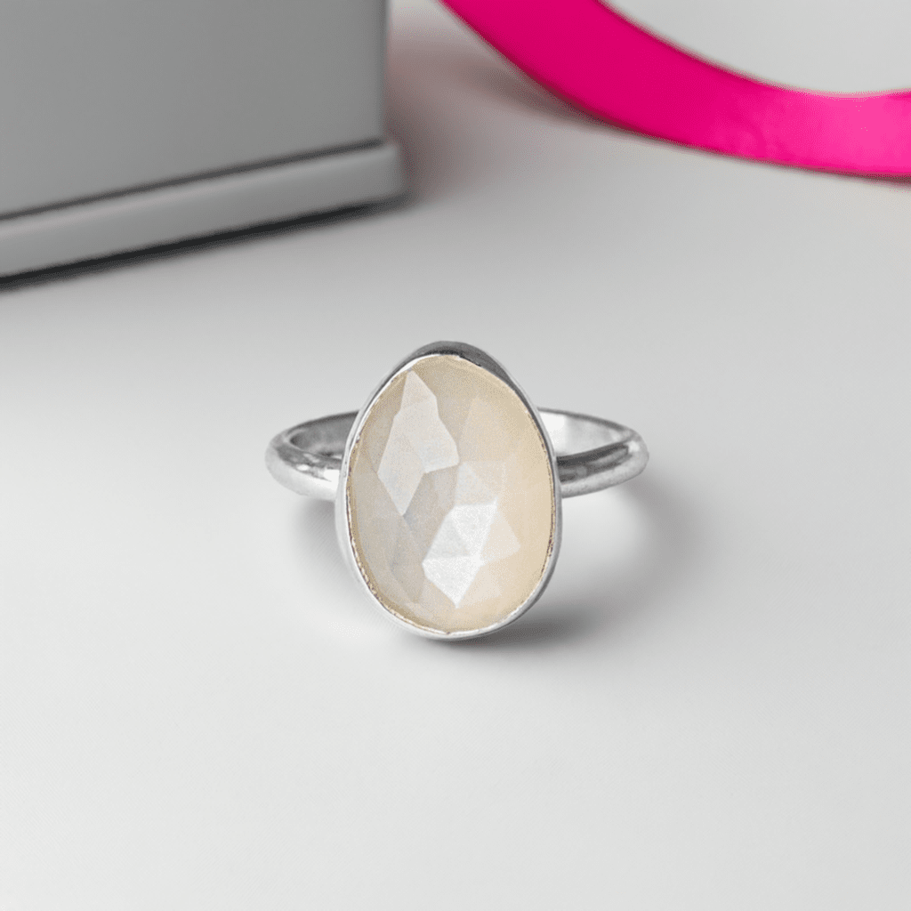 Celebrate your love with our handcrafted Moonstone Statement Ring in Sterling Silver. Known for promoting balance and harmony, this moonstone ring is a thoughtful anniversary gift that captures timeless elegance and sustainable UK craftsmanship.