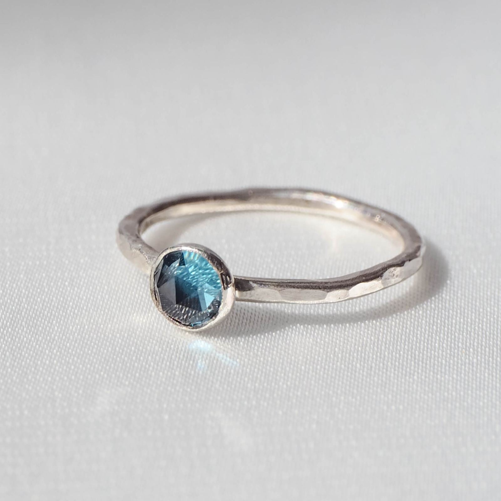 London Blue Topaz Rosecut Hammered Sterling Silver Stacking Ring Lunar Moth Jewellery