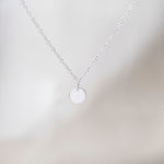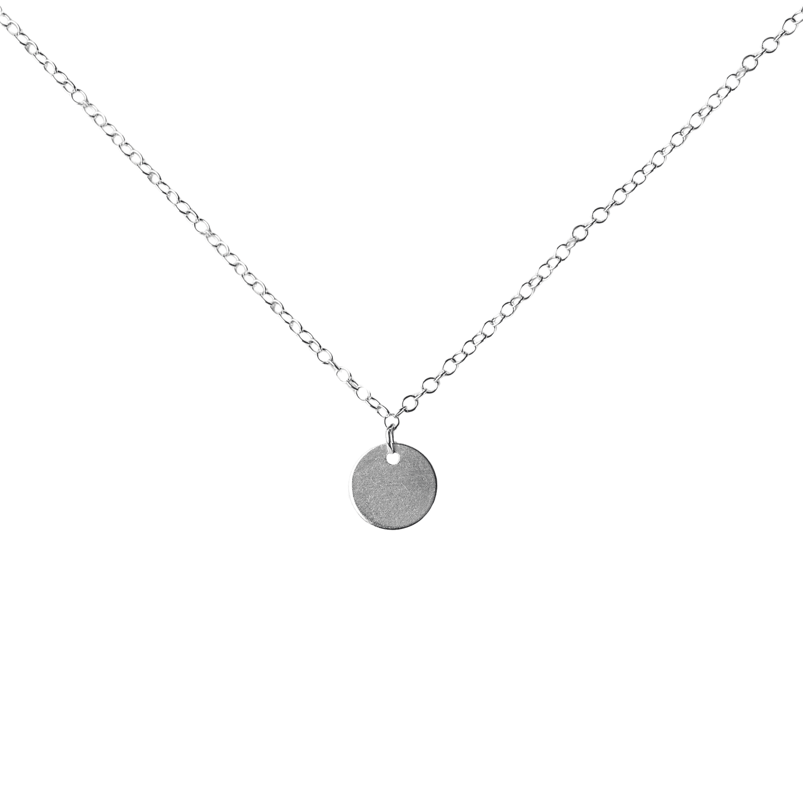 Sterling Silver Necklace with a solid circle pendent, worn on a model.