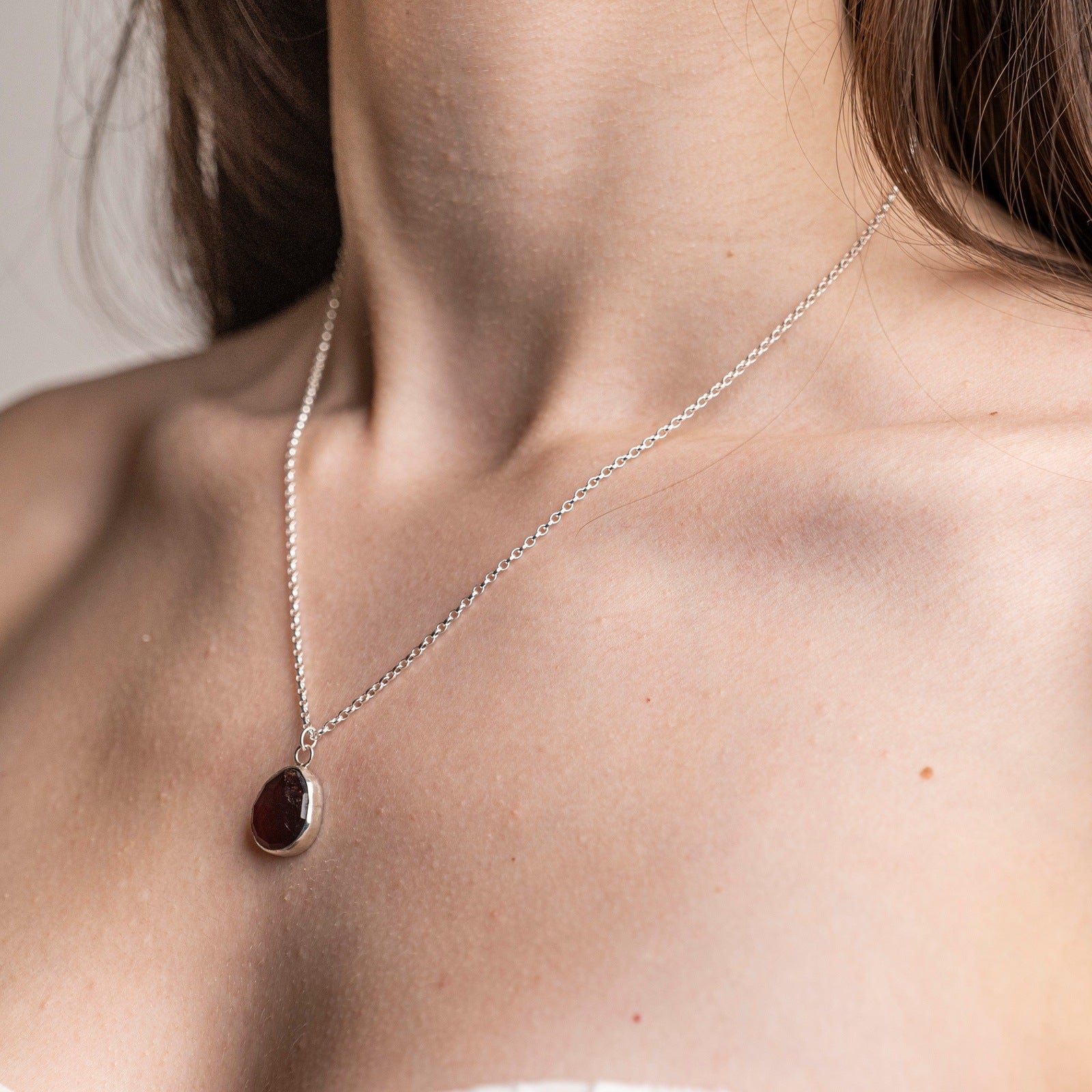 Elevate your everyday look with our Pink Tourmaline Sterling Silver Necklace. Featuring a rose-cut Pink Tourmaline gemstone, this necklace adds a bold yet feminine touch to any outfit. Handcrafted in Nottingham, it’s a versatile piece that transitions effortlessly from day to night.